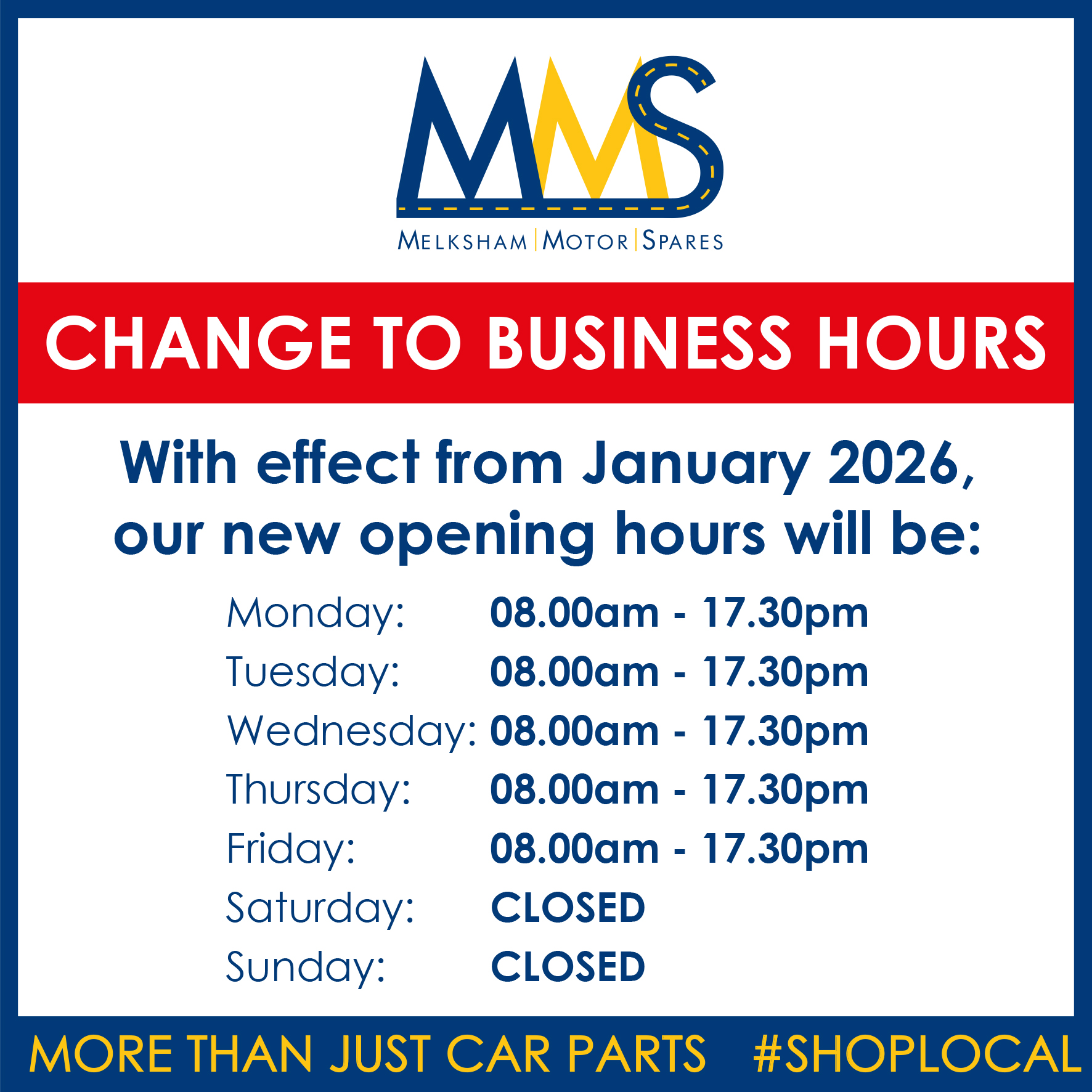 Please note that we will no longer be open on Saturdays from January 2026.